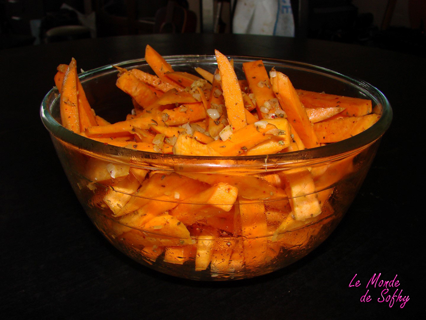 En ce moment, une envie fulgurante me prend de cuisiner des légumes dont je n’ai pas l’habitude (oulala brin de folie !). La patate douce ne m’avait jamais trop branchée, mais j’ai décidé de sauter le pas. Des fois qu’on passe à côté d’un truc de fou, il ne faudrait pas louper ça. J’ai essayé en purée, en gratin, en lasagnes, en frites… Et ben, les winneuses sont les frites, c’est bien un truc de fou. Je ne la fais plus que comme ça, Mr Patate adore, et les nenfants en sont fans. « Frites de patate douce demain chéri ? » « WAIIIIIIIII !!!!!!!!! » * Danse de la victoire *