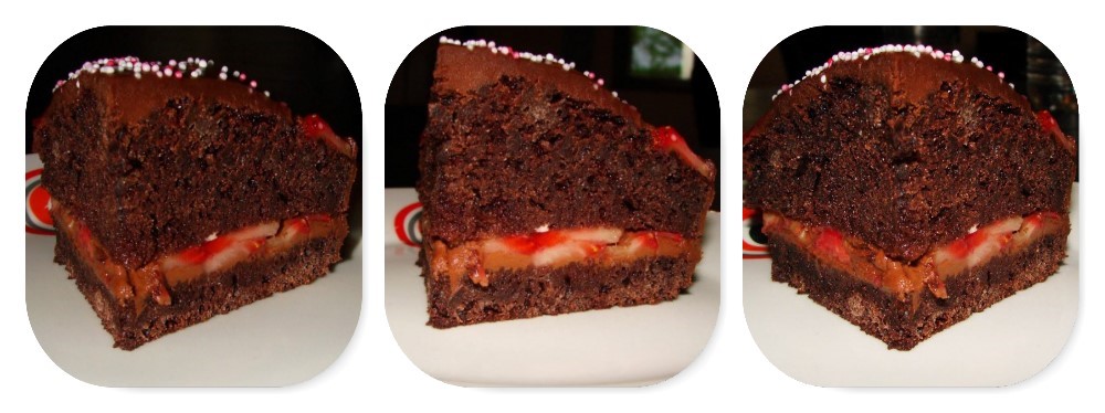 Petit Piou m’a demandé de lui faire un gâteau au chocolat et aux fraises pour son anniversaire. J’étais septique, mais défi relevé. Il me fallait un gâteau fort en chocolat et qui se tienne bien, un peu dans le style d’un Cake.