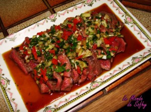 Une fois la viande refroidie, la couper en fines tranches, répartir un peu de marinade dessus, et laisser reposer.